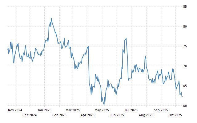 - Cotação do Brent atual (15/10/2025): US$ 62,24/bbl